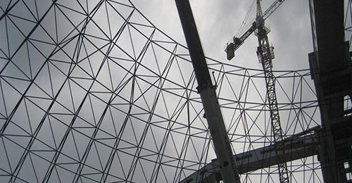 瀏覽次數(shù):74時間:2025-3-13一、球形網(wǎng)架的小拼單元的安裝。小拼制作前,必須保證胎膜底部地面的平整度及剛性,制作小拼模具時首先利用四根ⅰ25工字鋼作為模具底座,并利用水準儀找平,經(jīng)緯儀...