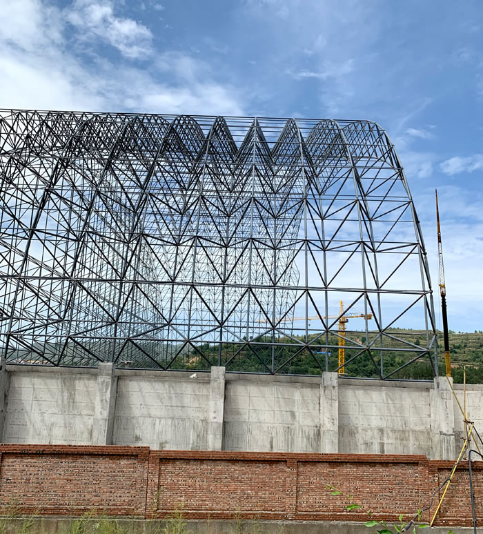 網(wǎng)架鋼管:網(wǎng)架桿件采用高頻焊管或無縫鋼管,管徑小于等于Φ159的桿件材質(zhì)符合《碳素結(jié)構(gòu)鋼》GB/T 700中的Q235B 。管徑大于Φ159的桿件材質(zhì)應(yīng)符合《低合金高強(qiáng)度結(jié)構(gòu)鋼》GB/T1591中Q345B。螺栓球:選用《優(yōu)質(zhì)碳素結(jié)構(gòu)鋼,》GB/T699 中的 45 號鋼毛坯鋼球鍛造成型,表面應(yīng)光滑,無裂紋,無過燒,無麻點(diǎn)。高強(qiáng)螺栓、銷子:高強(qiáng)螺栓:性能等級按規(guī)格分別采用,M20~M36的高強(qiáng)螺栓,其強(qiáng)度等級應(yīng)按10.9級選用,鋼材品種選用《合金結(jié)構(gòu)鋼》 (GBT3077-1999)中的40Cr;M39~M64的高強(qiáng)螺栓其強(qiáng)度等級應(yīng)按9.8級選用,鋼材品種選用《合金結(jié)構(gòu)鋼》(GBT3077-1999)中的35CrMo; 錐頭:材質(zhì)對應(yīng)相應(yīng)的桿件材質(zhì),連接焊縫以及錐頭的任何截面應(yīng)與連接的鋼管等強(qiáng),厚度應(yīng)保證強(qiáng)度和變形的要求,對接焊縫應(yīng)符合《鋼結(jié)構(gòu)工程施工質(zhì)量驗(yàn)收標(biāo)準(zhǔn)》GB50205-2020規(guī)定的二級質(zhì)量檢驗(yàn)標(biāo)準(zhǔn)的要求,焊縫飽滿,不得有夾渣,未焊透,氣孔,咬肉等缺陷并有試驗(yàn)報告,宜模鍛成型。